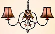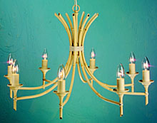 Wrought iron candle chandeliers can be single, double or treble tiers with a number of lights on the fittings. They can be complemented with wrought iron wall lights, standard lamps and table lamps.